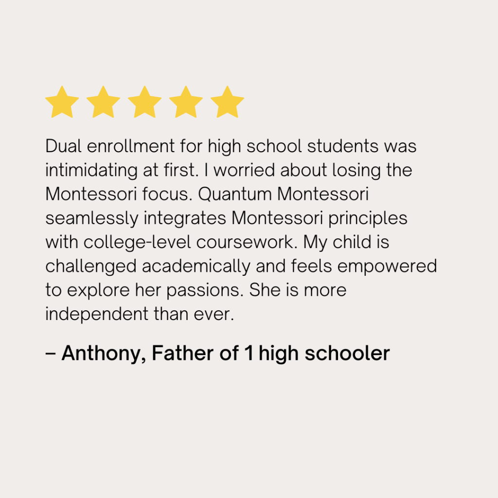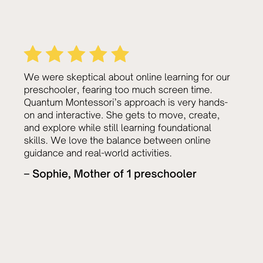 At Quantum Montessori, we begin with a one-on-one parent meeting to understand your family, your child’s learning style, and your goals. From there, we create a personalized learning path that fits your values and your child’s unique needs.